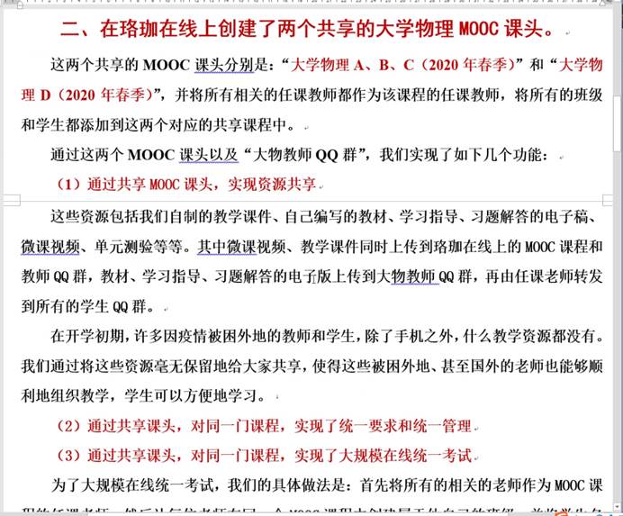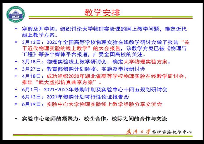 沈黄晋老师介绍了大学物理全体老师克服疫情带来的重重困难,团结一心,分工合作共同制作微课, 并在珞珈在线上创建MOOC课头,探索在珞珈在线上进行网络考试的新模式。